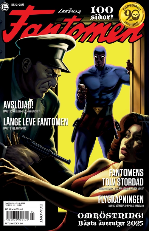 Fantomen er de tusen reisers mann. Kampen mellom det onde og gode er evig – Fantomen hviler aldri. Fantomen står på de svakes og undertryktes side. Han står for rettferdighet. Fantomen er en av verdens fremste eventyrsserier og fyller 70 år i år. Ett jubileum som feires hele året, med ekstra mange Fantomeneventyr! Med kvalitetsserier som Thorgal, Johnny Hazard, Bernard Prince, Mysteriepatrullen, Jerome K Bloche, Herman Hedning og Captain Biceps. Bladet har til og med Fantomeneffekter, konkuranser og bilager. Fantomen kommer ut med 26 nummere per år og er på svensk.